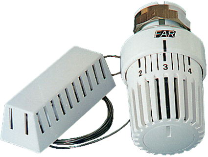Датчик установленный в головке регистрирует комнатную температуру и активирует, благодаря изменению внутреннего давления наполняющей его жидкости, открытие или закрытие вентиля для того, чтобы достичь требуемой комнатной температуры, установленной на термостатической головке. Для правильной регистрации температуры, ось головки надо располагать горизонтально. Если нагреватель установлен в нише стены или закрыт мебелью или расположен за толстыми занавесками, то лучше использовать термоголовку с выносным датчиком.
