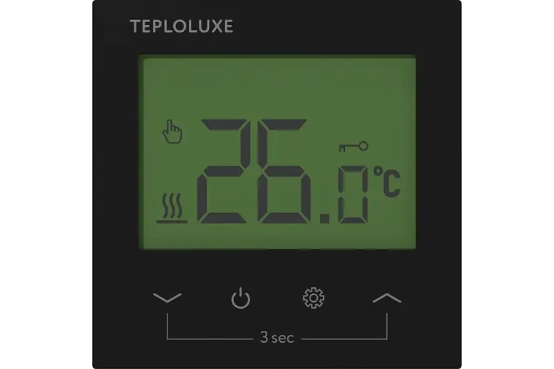 Терморегулятор оснащен информационным жидкокристаллическим экраном, отображающим состояние системы обогрева и сенсорными кнопками управления